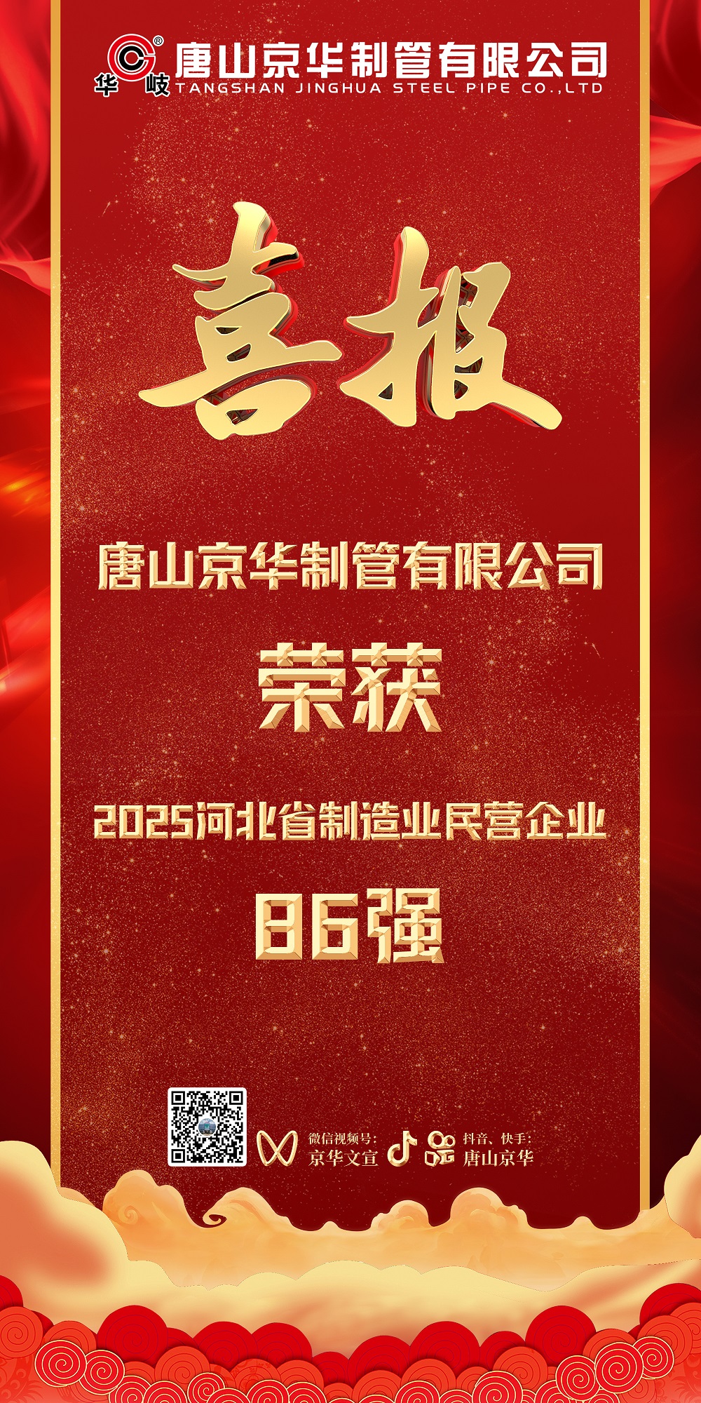近日,河北省工商联发布了2025河北省民营企业百强系列榜单。唐山京华荣膺2025河北省制造业民营企业100强第86位、河北省民营企业研发投入100强第62位。